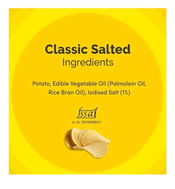 Made from the finest quality potatoes, Lays Classic Salted is your go-to snack for every occasion. Whether you're enjoying a movie night at home, hosting a party, or simply need a quick munch on the go, this classic treat has got you covered!