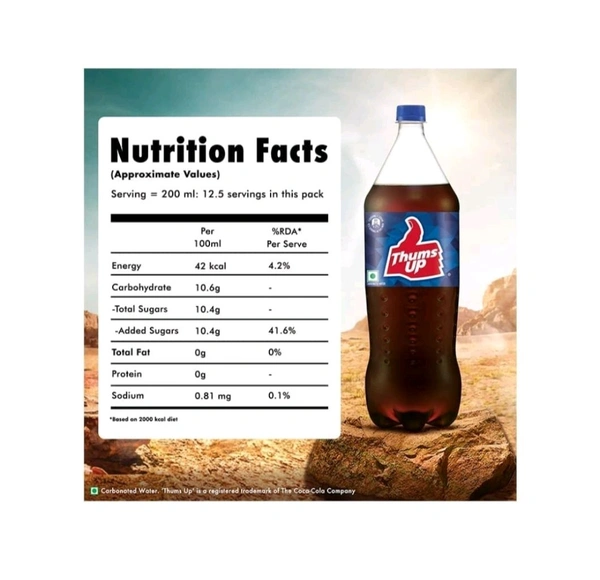 Get ready to experience the bold and refreshing taste of Thums Up, now available in a convenient 2-liter bottle! Brought to you by the renowned brand Coca-Cola, this iconic drink is perfect for quenching your thirst, sharing with friends, or adding excitement to any celebration. With its signature fizzy punch and robust flavor, Thums Up is more than just a beverage—it’s an adventure in every sip!